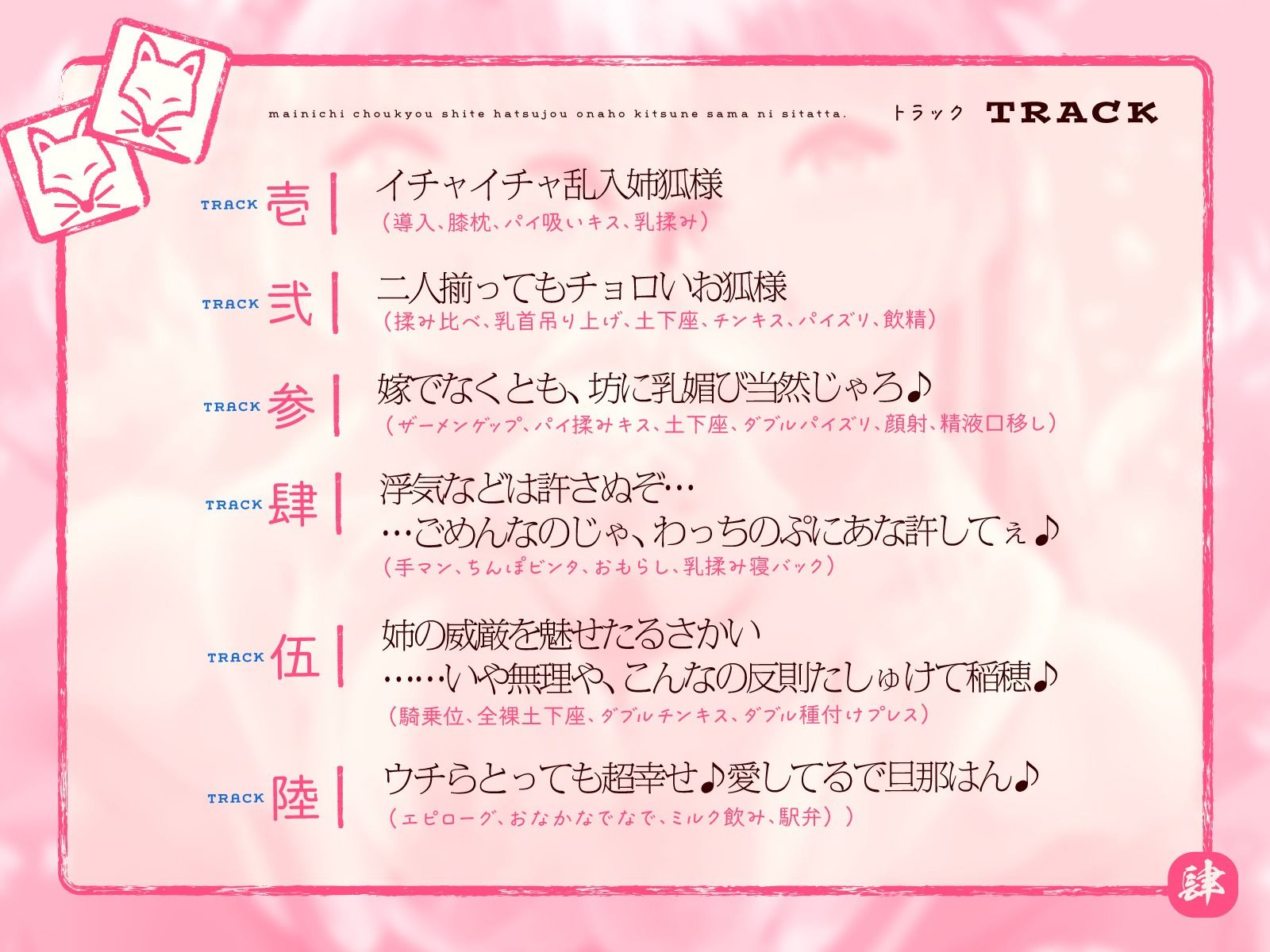 TRACK弐 | 二人揃ってもチョロいお狐様(揉み比べ、乳首吊り上げ、土下座、チンキス、パイズリ、飲精)